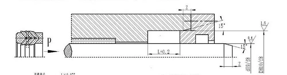V 字型シールは、ガスケットを調整することで軸方向の寸法を調整でき、最適なシールと摩擦を実現します。軸方向寸法を調整することで、長期使用後の初期摩耗を延長することができます。調整可能なシールキャビティの軸方向寸法の推奨設計は 1.025L、調整範囲は 7.5%L です。