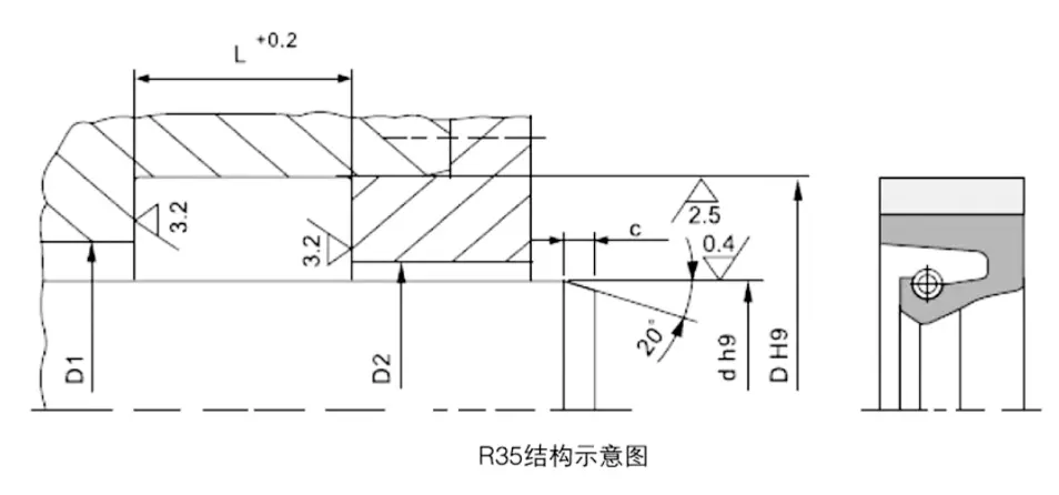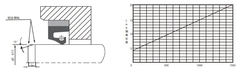 布強化オイルシールの設置:慎重な設置は、オイルシールの通常の使用の前提条件です。インストールチャンファーについては、以下の表を参照してください。