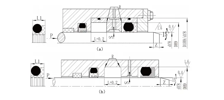 | 2。回転シールの場合、ロータリーシャフトの表面硬度はHRC≥58にすることをお勧めします。 3. 30MPaを超える圧力の場合、押出ギャップにはH8/F8が推奨されます。 | ||||||||||
