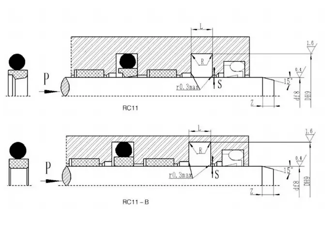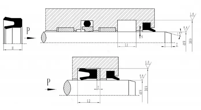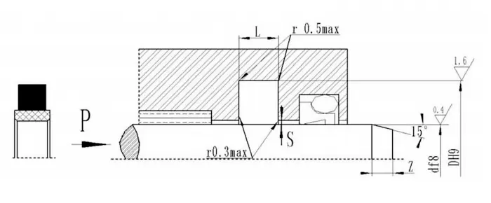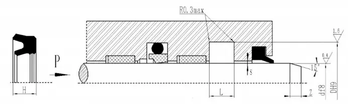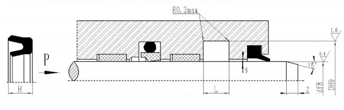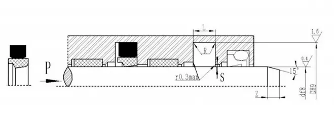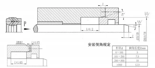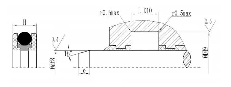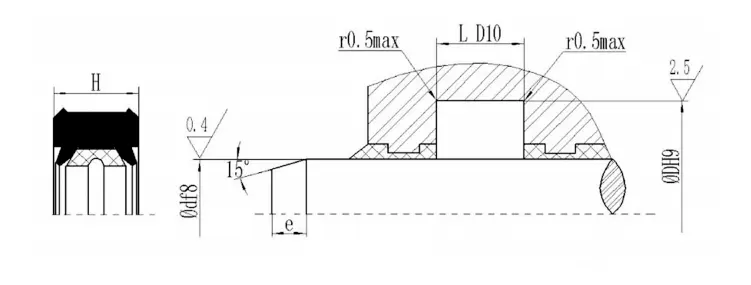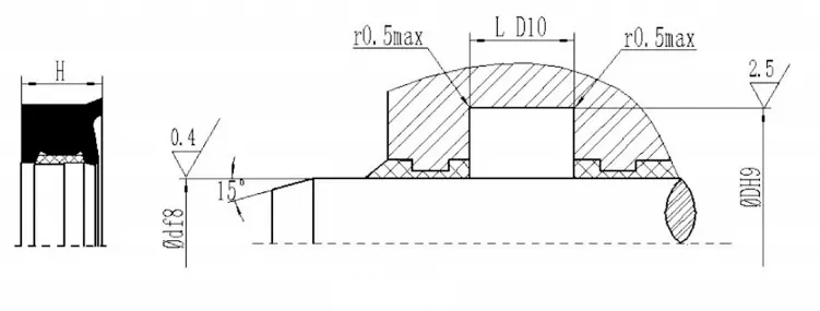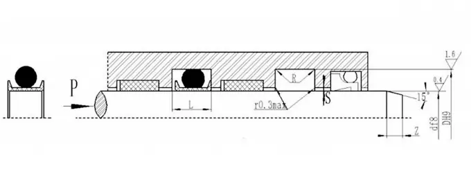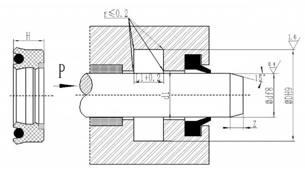 V字型の結合シールは、ガスケットの軸方向のサイズを調整することにより、シーリングと摩擦の最良の状態を実現できます。長期操作後の最初の摩耗は、軸サイズを調整することで拡張できます。シーリングキャビティの調整可能な軸方向のサイズを1.025Lに設計し、調整量は7.5%Lになるように設計することをお勧めします。