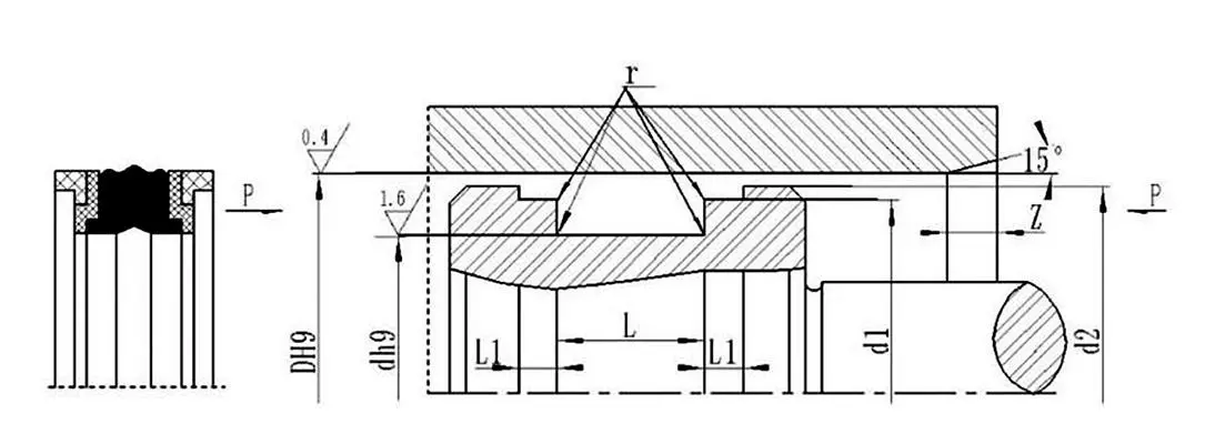 4. NBR シール要素の特殊な形状により、取り付け時の溝の歪みを防ぎます。